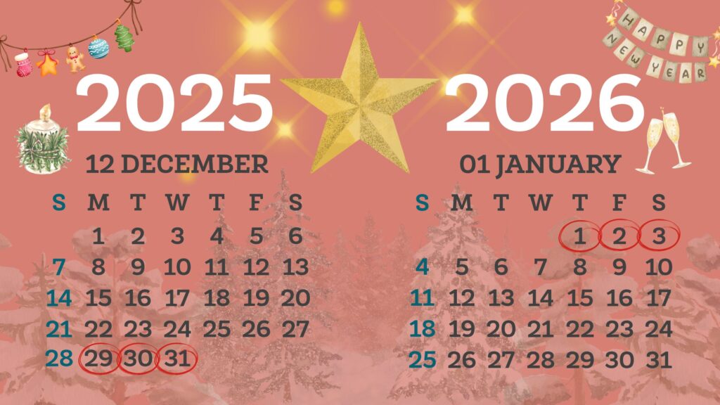 【年末年始】2025年12月29日(月)〜2026年1月3日(土)